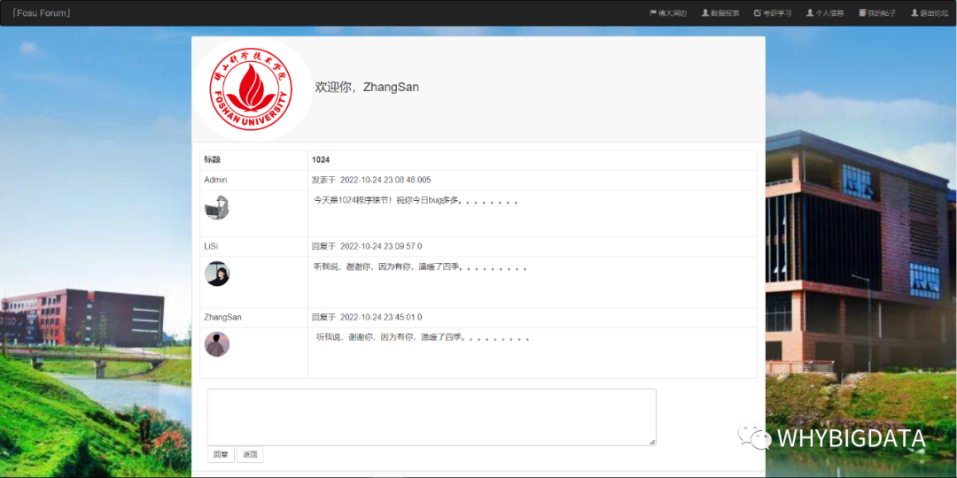 在studyReply.jsp页面底部设置有回复框,页面设计和逻辑实现和普通帖子的回复也是大同小异的。