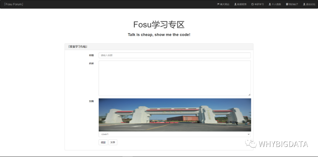 点击学习专区的「发表学习专帖」按钮进入发表页面,此处不同于普通帖子的是,学习专区的帖子新增了帖子封面壁纸