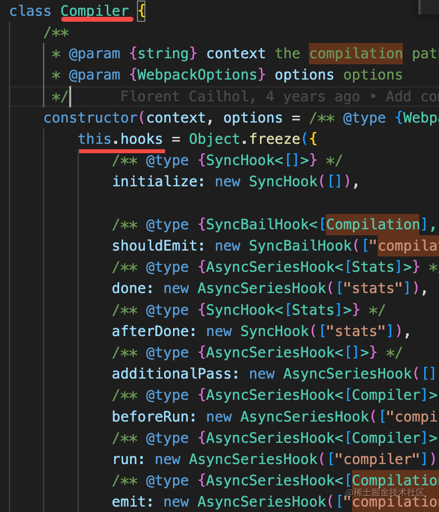 而我们是想在这个 hook 里注册 Compilation 的 hook 的,全局只需要执行一次就行,所以用 thisCompilation 的 Compiler hook。
