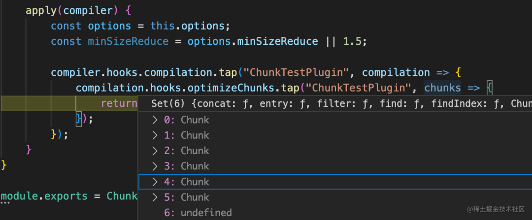 通过 chunkGraph.getChunkSize 的 api 拿到 chunk 大小,通过 chunkGroup.getIntegratedChunkSize 的 api 拿到合并后的 chunk 大小。