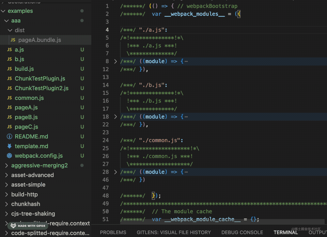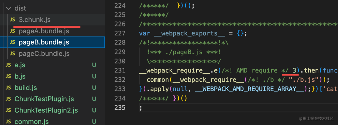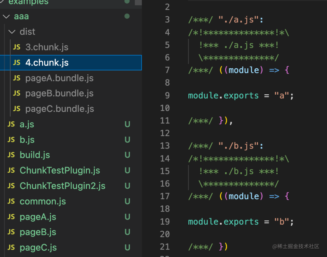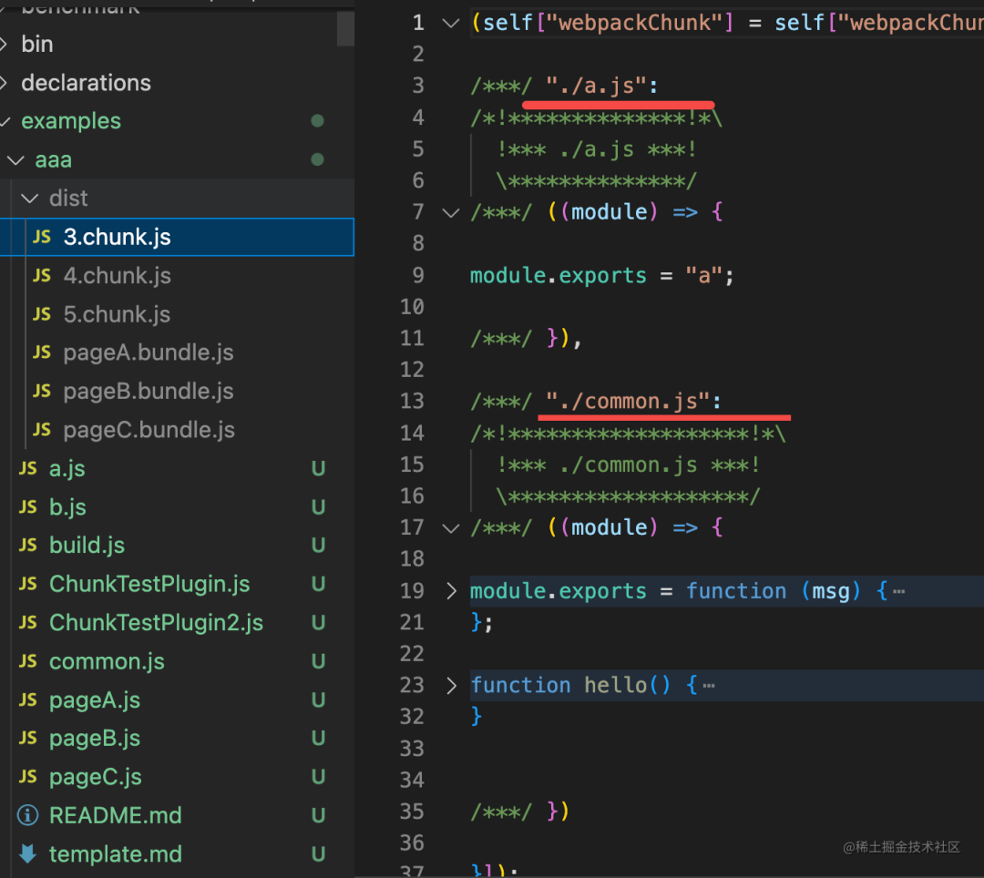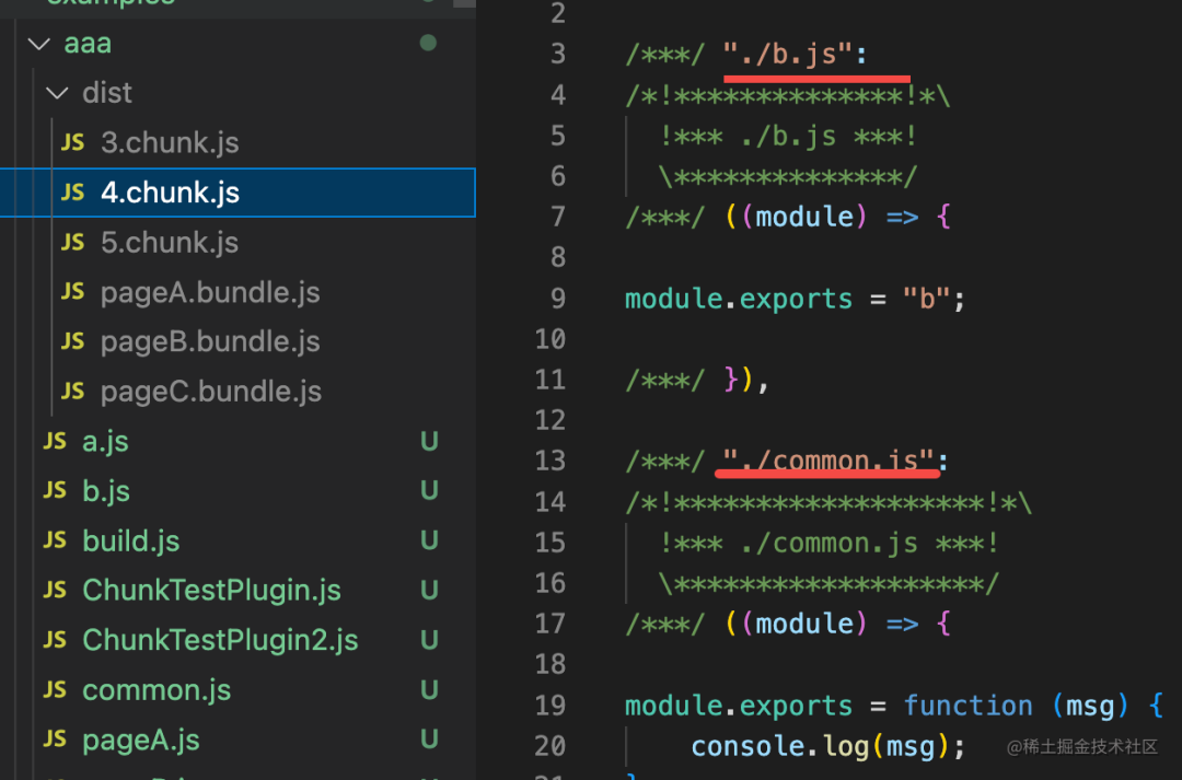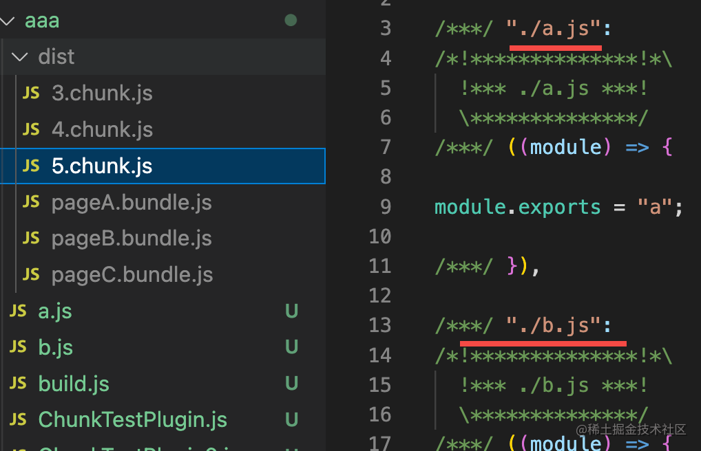 分别是 a + common,b + common,a + b,也就是每个入口模块依赖的所有异步模块。