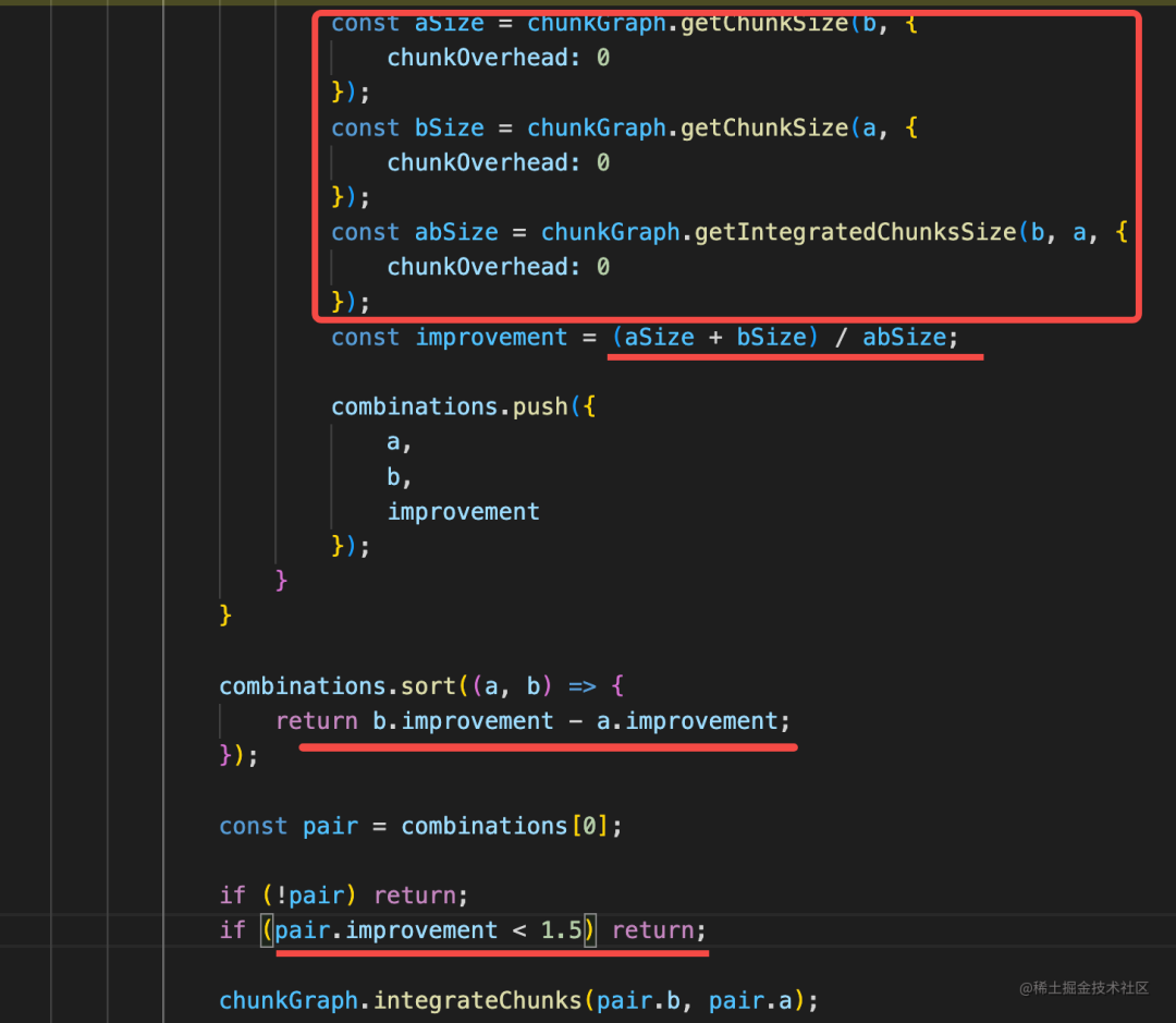 const abSize = chunkGraph.getIntegratedChunksSize(b, a, {