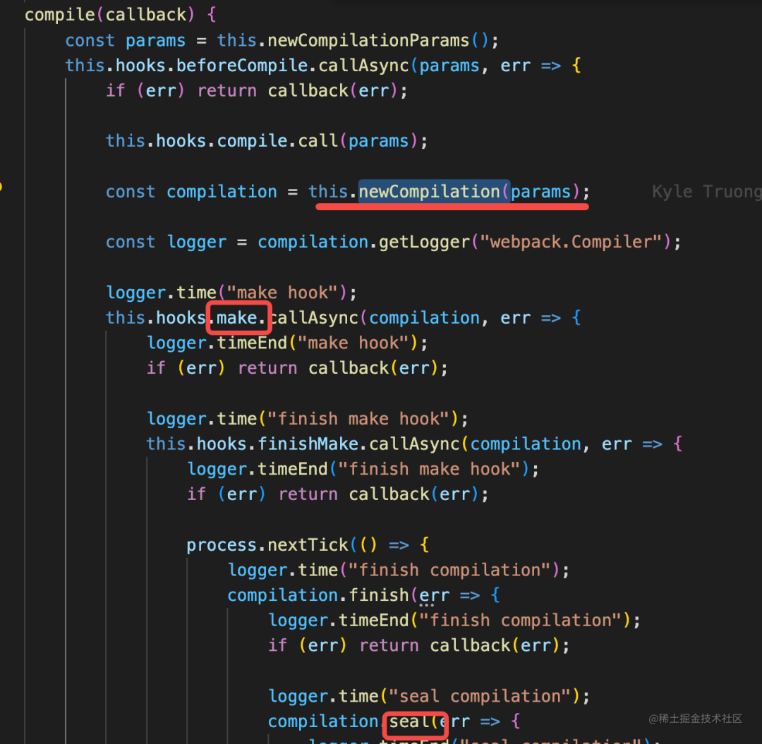 而 newCompilation 是在 make、seal、emit 的流程开始之前调用的: