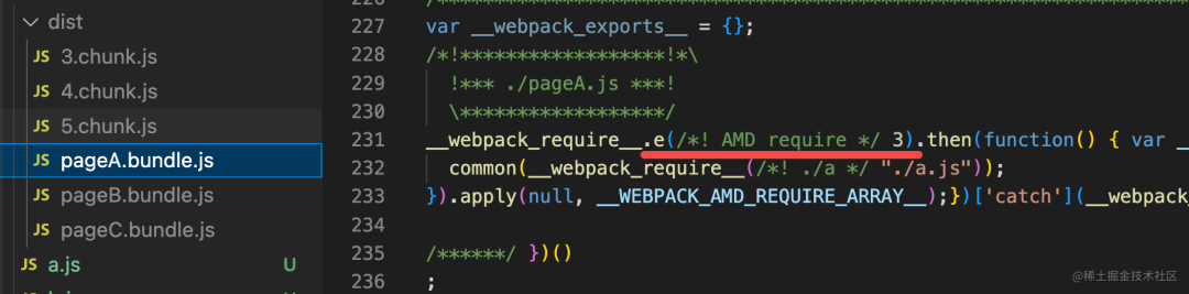 入口 chunk 对应的文件里引入异步模块的方法变成了 webpack runtime 的 _webpack_require.e