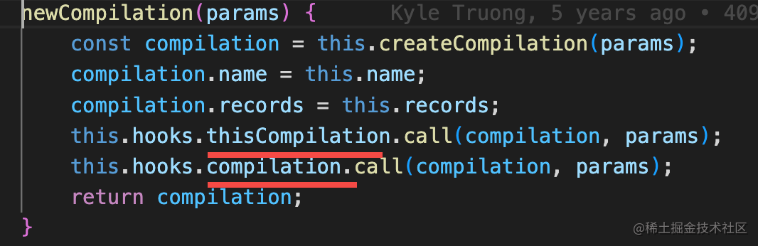 可以看到 thisCompilation 是在 newCompilation 这个方法调用的。