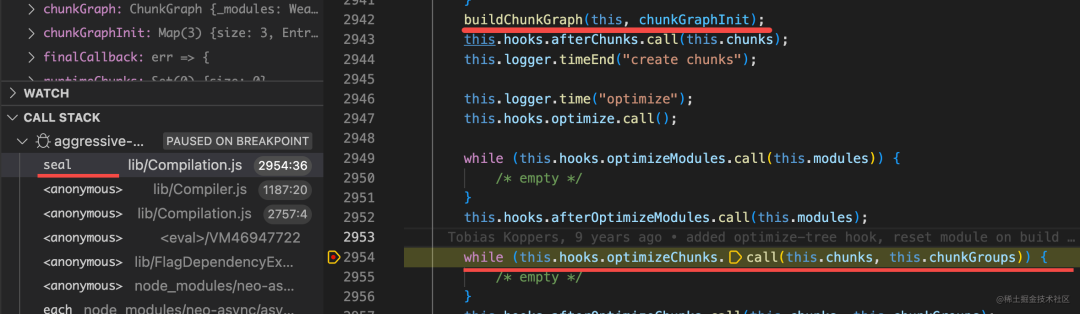 在 seal 里做了 ChunkGraph 的创建,然后调用 optimizeChunks 的 hook 对 Chunks 做处理。