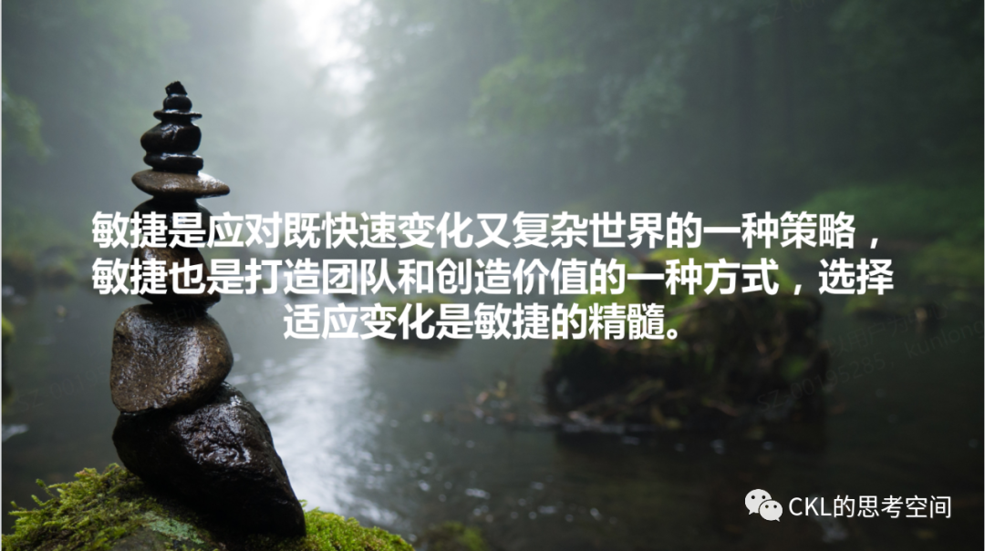 都说现在是VUCA的时代,需要我们拥有应对变化的能力,而敏捷,刚好为我们提供了这样一种能力。敏捷是应对既快速变化又复杂世界的一种策略,敏捷也是打造团队和创造价值的一种方式,选择适应变化是敏捷的精髓。