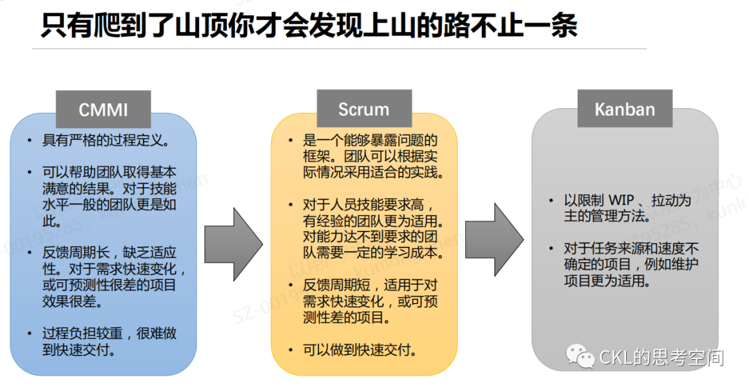 敏捷从来就不是也不应该是“目标”,它只是我们达成目标的途径之一。我们最终关注的是价值的实现和交付。上山的路远不止一条。