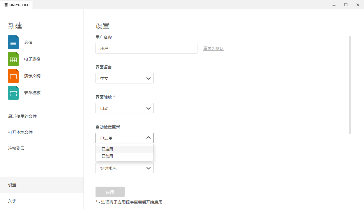 选项位置:开始按钮 -> ONLYOFFICE -> ONLYOFFICE编辑器