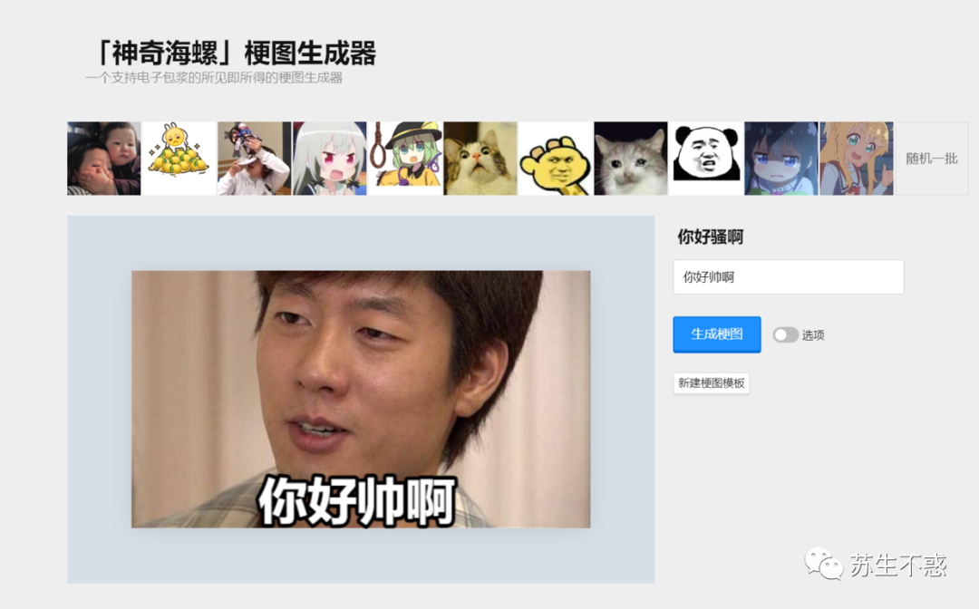 一个支持电子包浆的所见即所得的梗图生成器 https://x.magiconch.com/