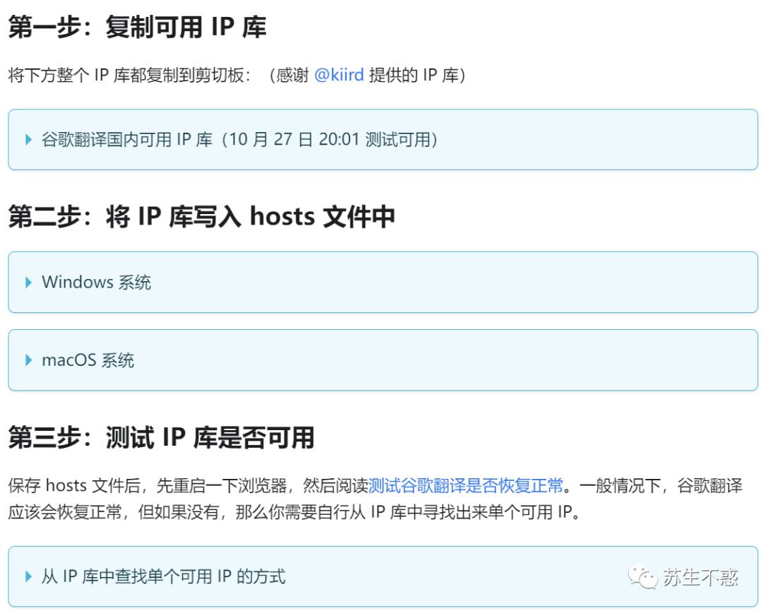 作者在博客中也提供了解决方案 https://hcfy.app/blog/2022/09/28/ggg,来源https://github.com/hcfyapp/google-translate-cn-ip ,不用自己找ip了。