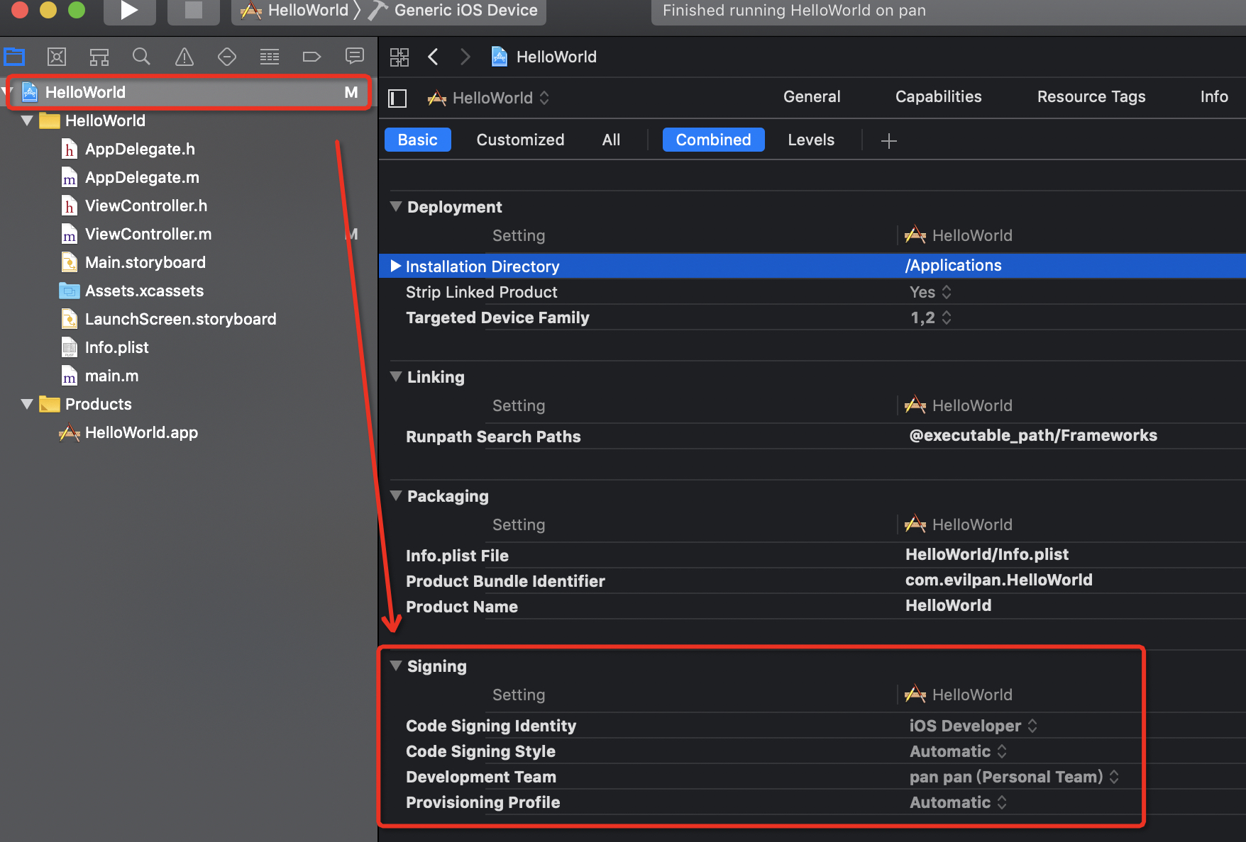Validate /Users/pan/Library/Developer/Xcode/DerivedData/HelloWorld-dnyjqrgxcjjobvfzytzhtzpmjlmx/Build/Products/Debug-iphoneos/HelloWorld.app (in target: HelloWorld)