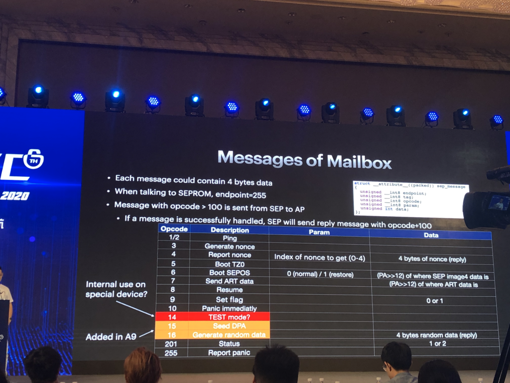 徐昊(@windknown)的压轴议题,这也是我觉得最有干货的一个议题了。在checkm8出来后,攻击者号称这是ROM的代码漏洞无法被修复,但是苹果计划在iOS14中修复这个问题,修复方法之一就是通过SEP。SEP是安全处理器(Secure Enclave Processor),与ARM提供的Truszone总线隔离不同,而是使用了一个独立的处理器来专门处理敏感信息。