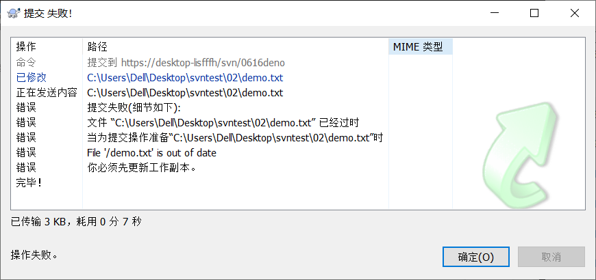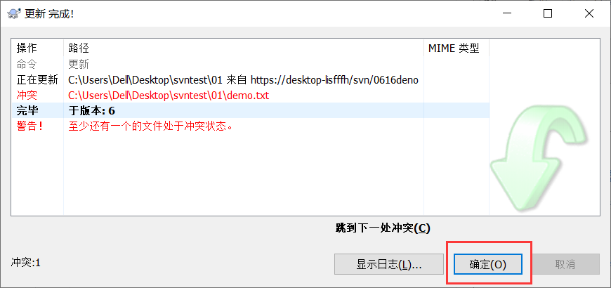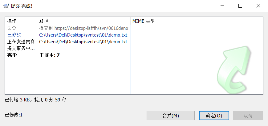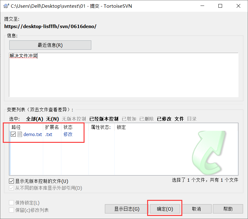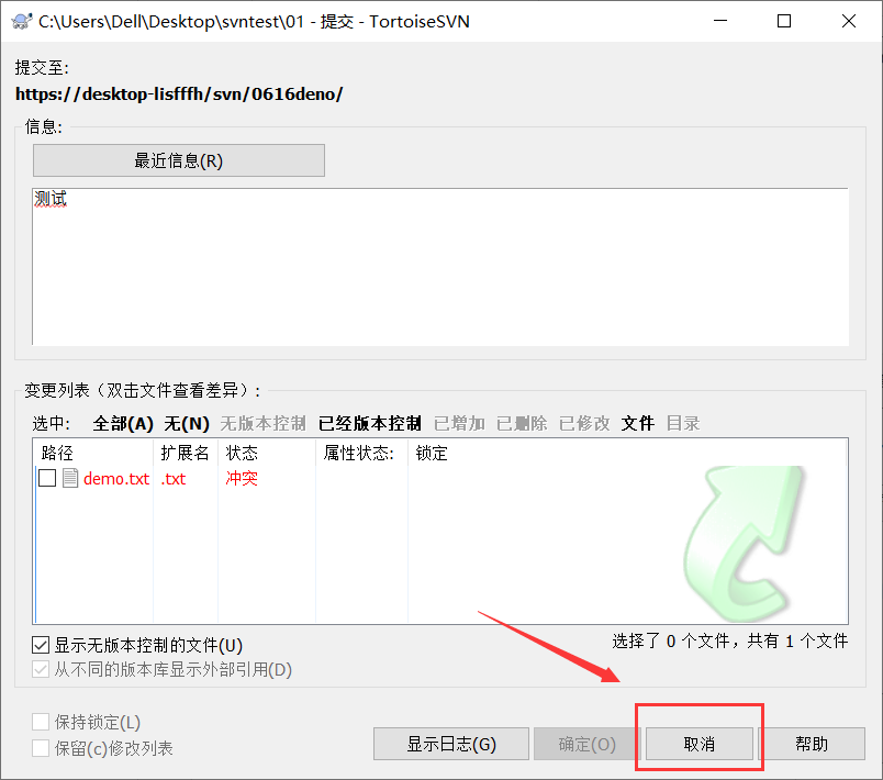 b. 删除 demo.txt.mine demo.txt.r5 demo.txt.r6 后重新提交