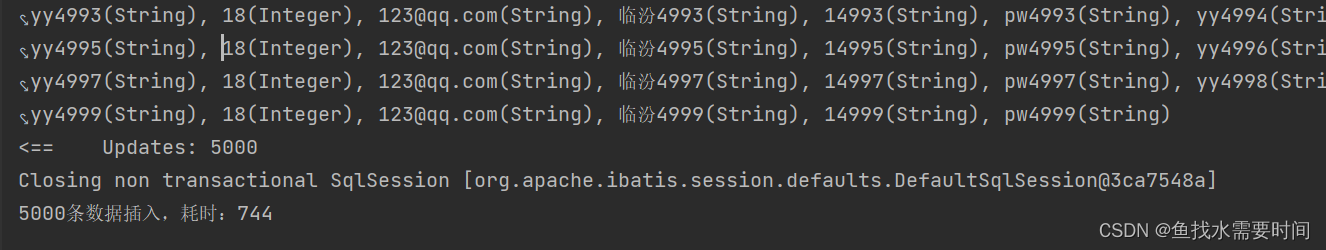 System.out.println("5000条数据插入,耗时:" + (end - start));