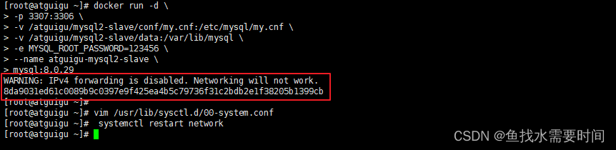 启动docker容器后提示 WARNING: IPv4 forwarding is disabled. Networking will not work.