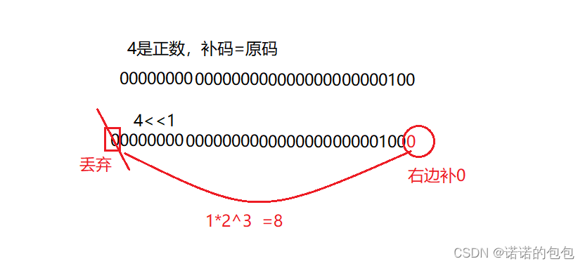 左移操作符<<:左边丢弃,右边补0。看实例: