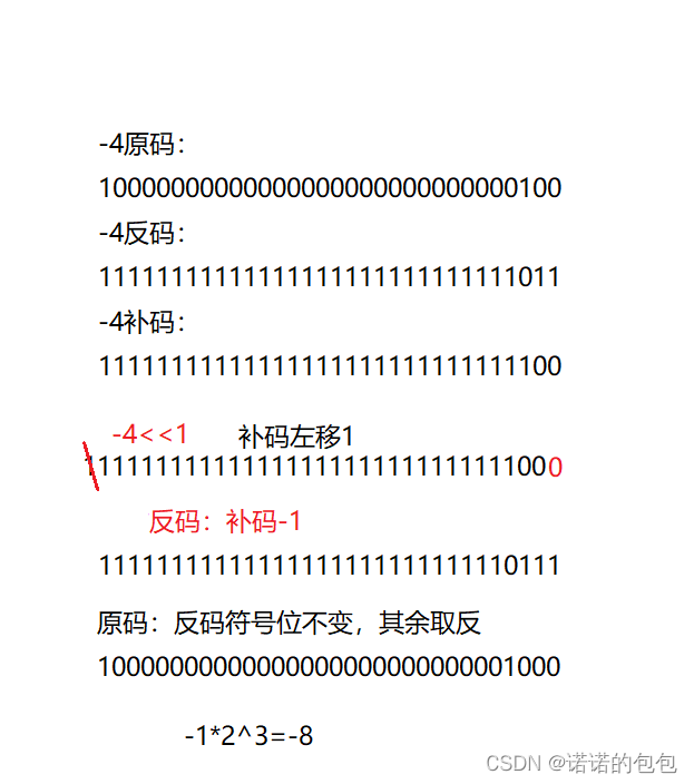 如果是负数,就要先求出它的补码,再<<,且听详细分析: