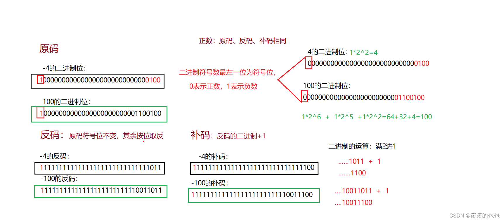 了解这个二进制的转化后,我们接下来了解什么是原码、反码、补码 刚刚我们转化过来的就是这个数的原码,而正数的原码、反码、补码都是相同的