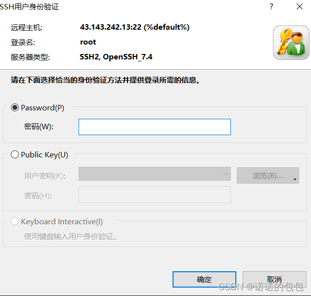 在此,我们敲打:ssh root @公网ip(注意前面的空格)会弹出如下界面,输入密码(云服务器重置的那个)