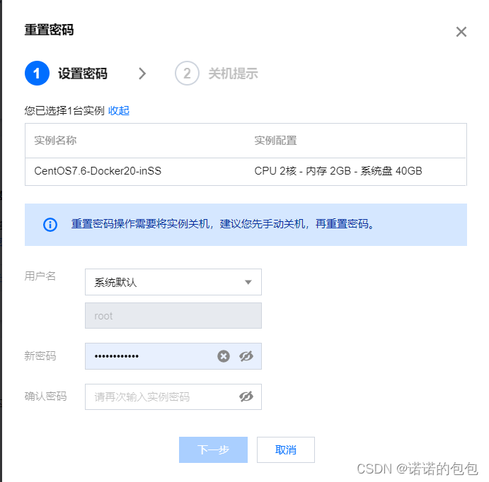 总结: 在这个环节我们最重要的是得到三个信息: 1. 服务器的外网 IP 2. 服务器的管理员账户 (固定为 root) 3. 管理员账户密码(云服务器设置的)