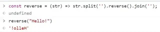 我们可以利用内置的 Array 方法,如 reverse() 和 join() 组合来创建一个简单的单行代码。