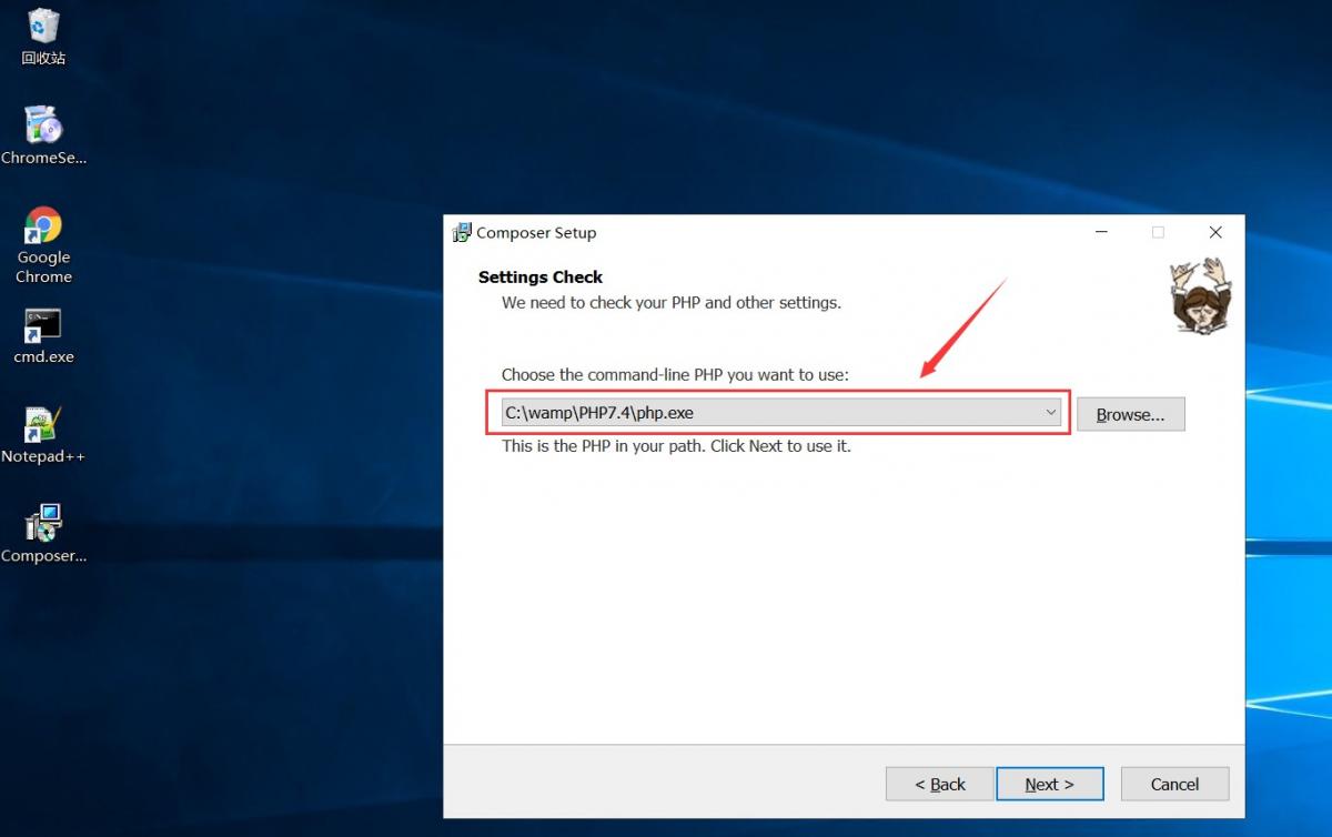 ,PHP的安装路径在环境变量 Path 中,则会自动选中,否则需要手动选中