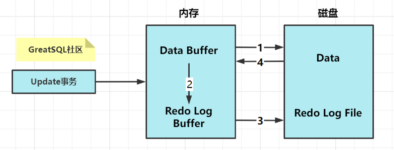 以一个更新事务为例,Redo Log 流转过程,如下图所示: