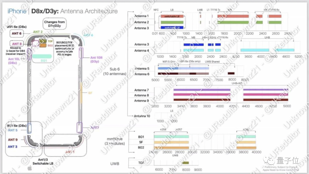 据MacRumors消息,一位名为“Unknownz21”的苹果研究人员曝光了一份iPhone15的天线结构图。