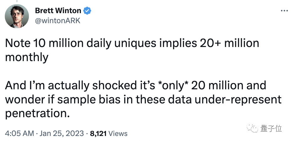 Winton还表示,日活超千万也意味着ChatGPT月度用户至少有两千万。