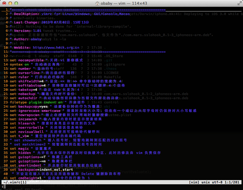 * 网站名称:obaby@mars * 网址:https://h4ck.org.cn/ * 本文标题: 《.vimrc 配置文件》 * 本文链接:https://h4ck.org.cn/2013/07/vimrc-%e9%85%8d%e7%bd%ae%e6%96%87%e4%bb%b6/ * 转载文章请标明文章来源,原文标题以及原文链接。请遵从 《署名-非商业性使用-相同方式共享 2.5 中国大陆 (CC BY-NC-SA 2.5 CN) 》许可协议。