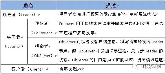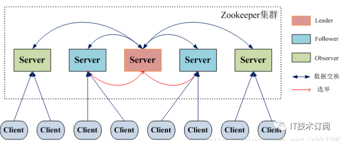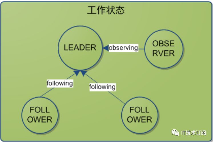 » 领导者(leader),负责进行投票的发起和决议,更新系统状态 » 学习者(learner),包括跟随者(follower)和观察者(observer),follower用于接受客户端请求并想客户端返回结果,在选主过程中参与投票 » Observer可以接受客户端连接,将写请求转发给leader,但observer不参加投票过程,只同步leader的状态,observer的目的是为了扩展系统,提高读取速度 » 客户端(client),请求发起方