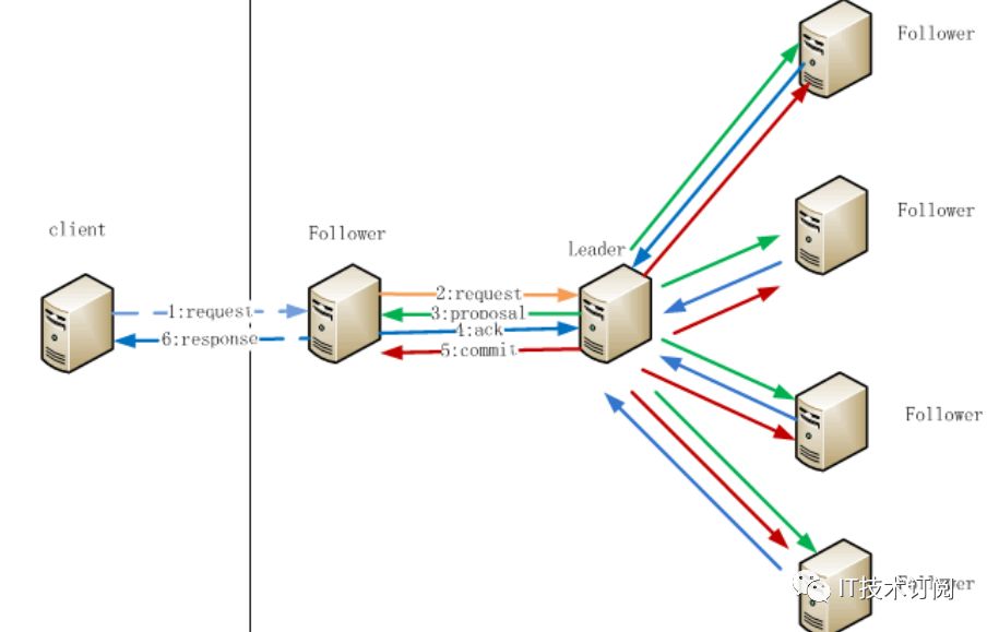 5.Leader将结果汇总后如果需要写入,则开始写入同时把写入操作通知给Leader,然后commit;
