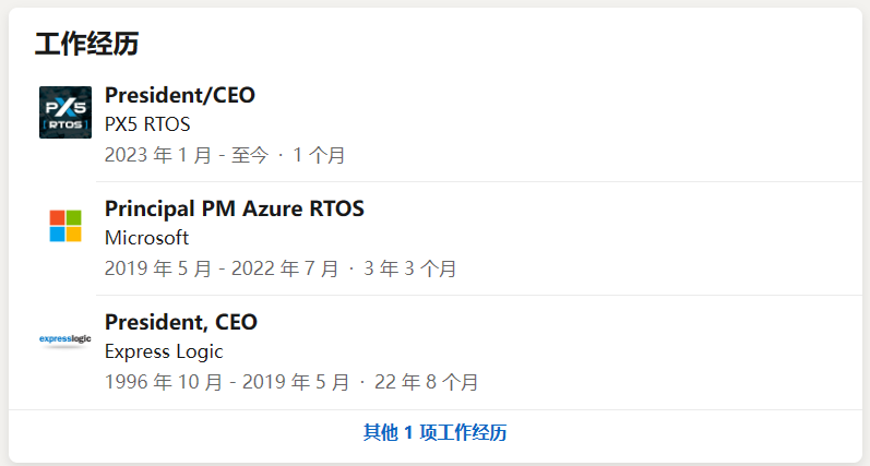当看到这两个名字时,很熟悉,这不就是ThreadX的老大Bill Lamie。