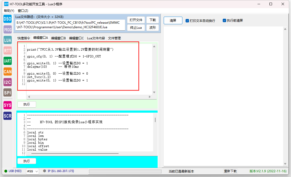 TOOL上电默认是3.3, 比如要设置为1.2V通信,那么调用LUA函数TVCC电压配置后,最好调用delayms延迟下,否则不是想要的1.2V。