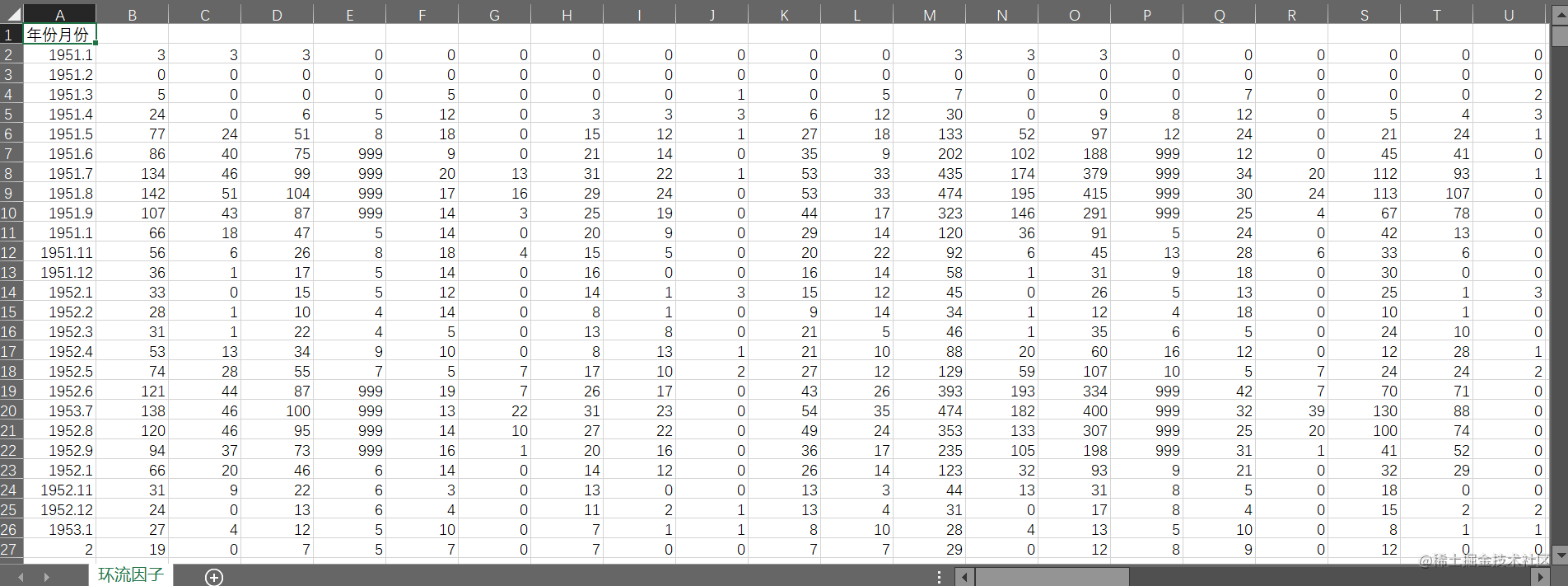 实验使用的输入数据是环流因子,是由国家气候中心气候系统诊断预测室再处理资料,资料数据全都为整型。