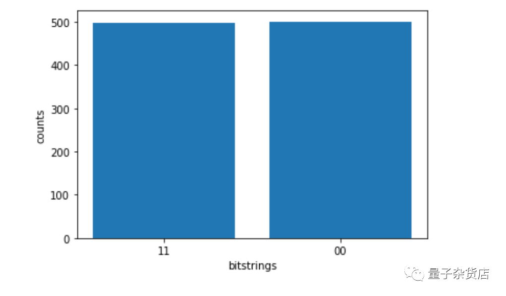 Counter({'00':501,'11':499})如果需要可视化结果,可以使用可视化库进行显示:
