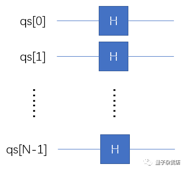 下面这个程序利用了一组量子比特(数量不定)去构建一个量子线路,对这组量子比特中每一个,都作用一个Hadamard门。