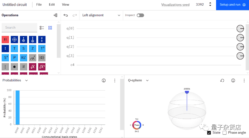 如何用Quantum Composer构建电路并可视化量子位状态(上图)