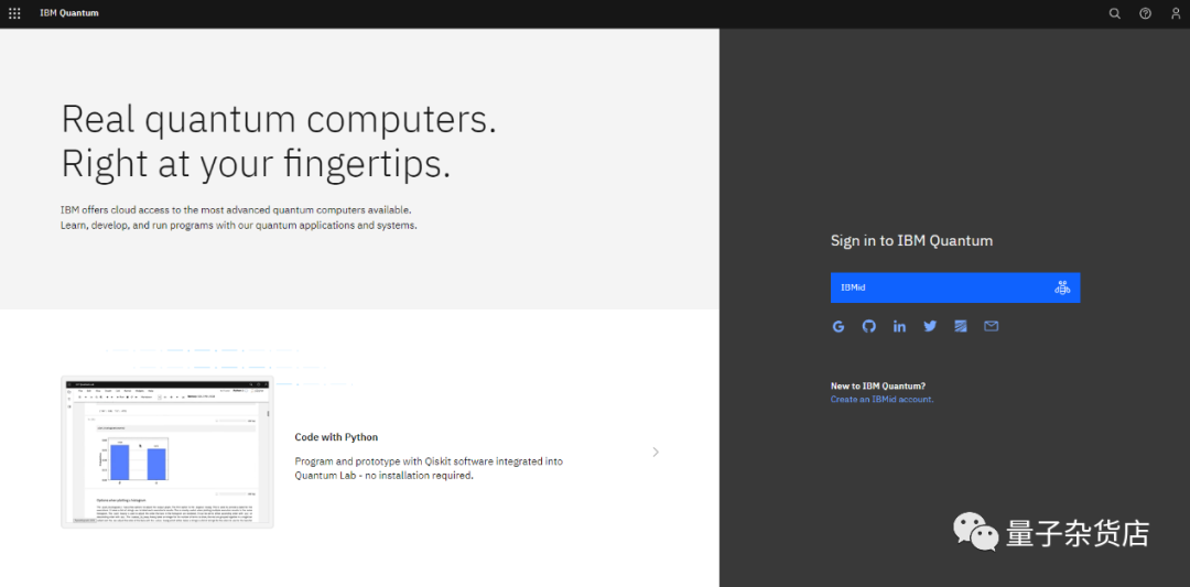 2017年IBM公司开放了自家的量子计算云平台(IBM Quantum),允许用户通过网络使用IBM的量子计算机。平台的普通账号是免费申请的,通过此平台,用户可以通过云端体验量子计算机的功能。