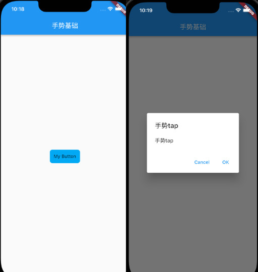 在上面的例子中,我们用手去tap按钮是没有互动效果的,也就是说按钮是不会变化的。