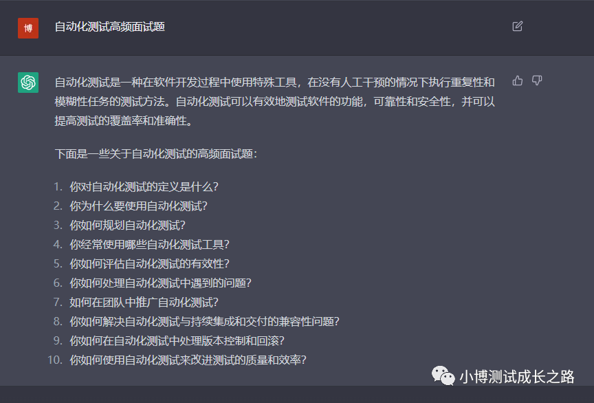 ChatGPT这个词相信大家最近看到都不会陌生,应该刷爆了各位的朋友圈,各种分享注册教程、什么AI写代码的文章比比皆是,今天,让我们一起来看一下OpenAI能不能教我们学测试呢,对测试人员的日常工作是否有帮助呢?