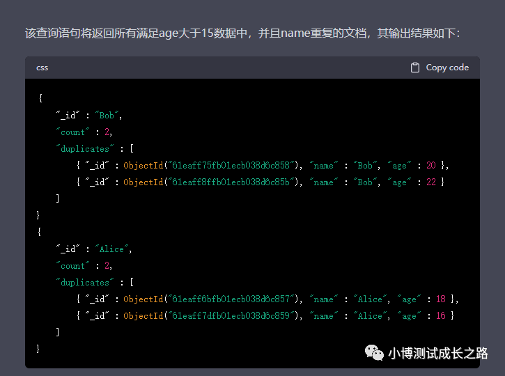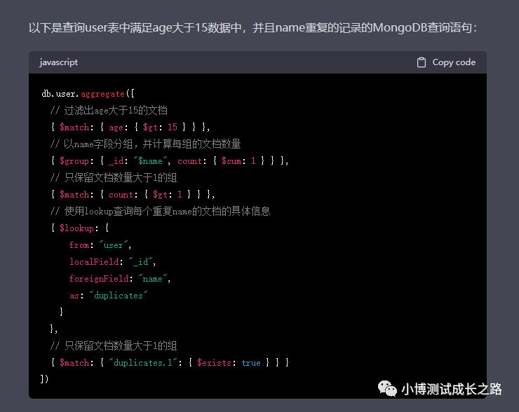 在chatpgt还没有出现之前,针对这种复杂的语句,自己要去百度学习他的用法,会稍微有点复杂,也可以使用studio3t的付费版,上面支持直接写mysql语法格式的sql进行查询,也可以帮你转换为mongo的js查询语法的语句。