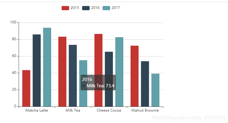 {product: 'Milk Tea', '2015': 83.1, '2016': 73.4, '2017': 55.1},