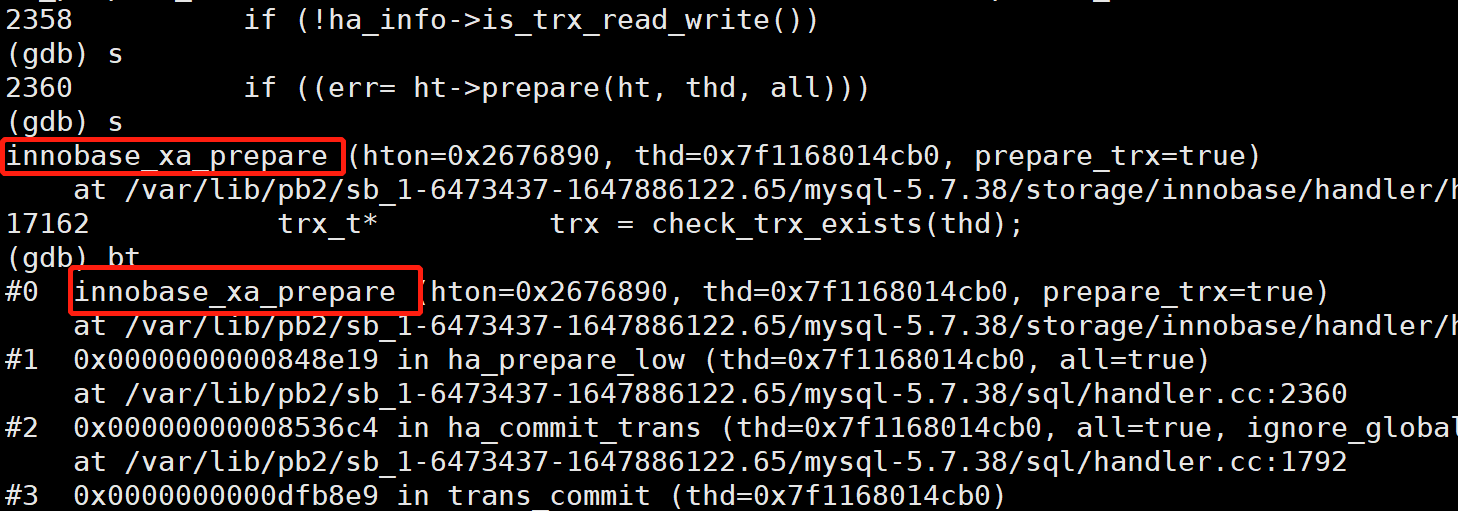 终于到了tc_log->prepare了, 有必要使用step进去瞧瞧. 不想瞧的直接next去看commit也可以的.
