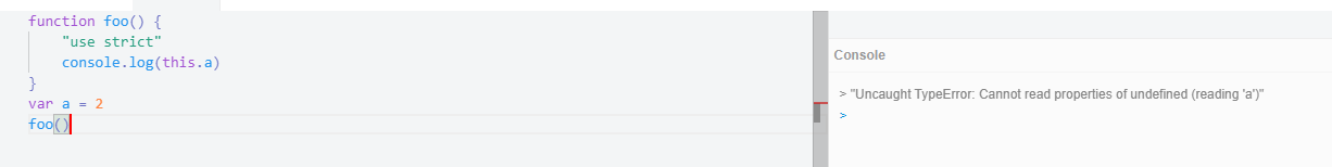 上面代码中console.log(this.a) 会输出2,因为函数调用时应用了默认绑定,this指向了全局对象