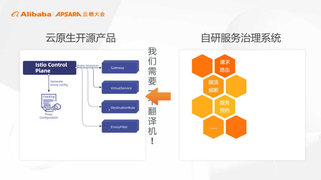 数据权威问题:常见的Service Mesh实践以K8s为准则,将所有的数据保存在K8s内,但平台现有数据大部分保存在自研的注册中心和配置中心内。