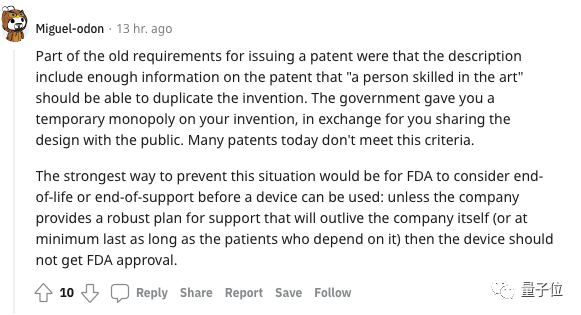 还有人建议,申请专利时,创业公司理应附带提交一份支持计划,保证患者们长期能获得设备维修及零件更换,否则,监管部门不应该批准其专利通过。