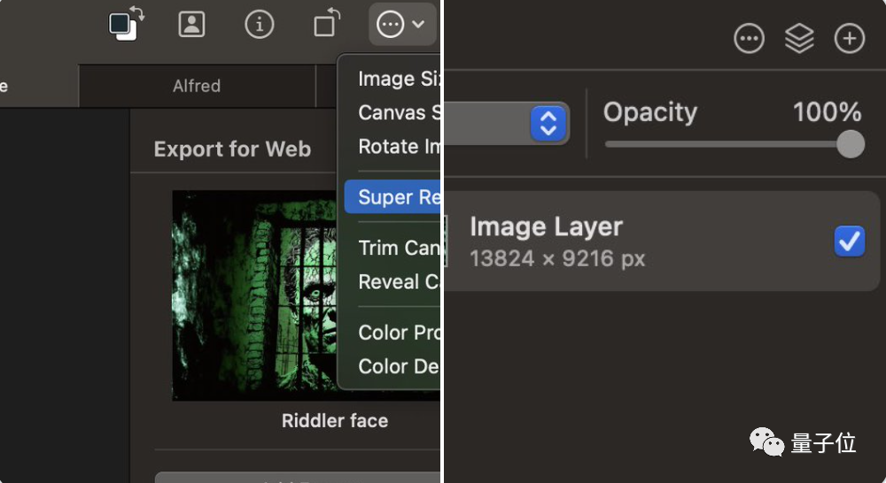 因此,作者又使用了Pixelmator,利用该工具的AI优化功能,将图像分辨率拉满到4K。