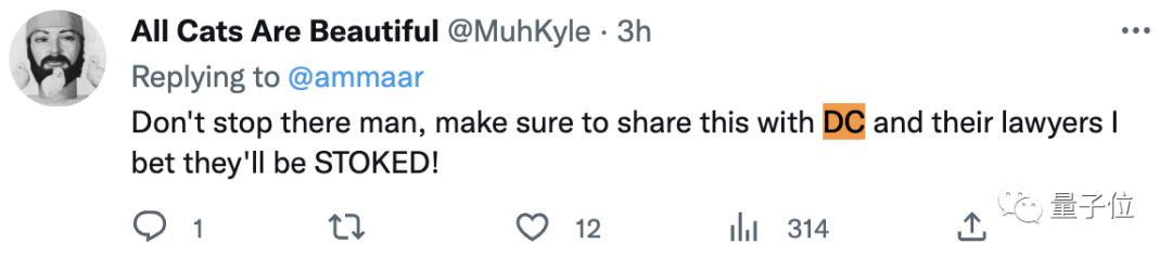 还有网友皮了一下。建议作者跟DC(蝙蝠侠出品方)分享下该视频,看看他们会不会送来律师函。